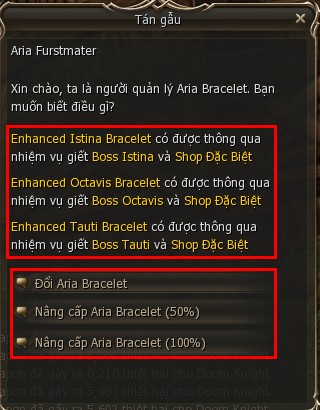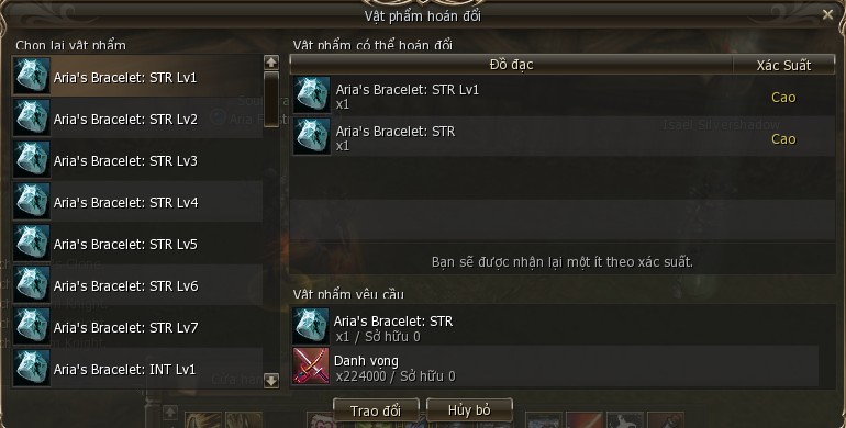 - Để nâng cấp Bracelet 50% bạn chỉ cần sử dụng Danh Vọng, nhưng tỉ lệ thành công sẽ chỉ có 50%.